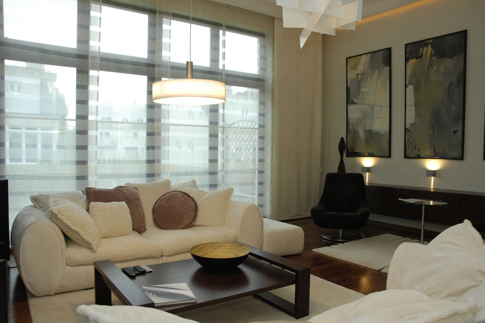 02 sofy stolik kawowy obrazy duże okna lampy fotel