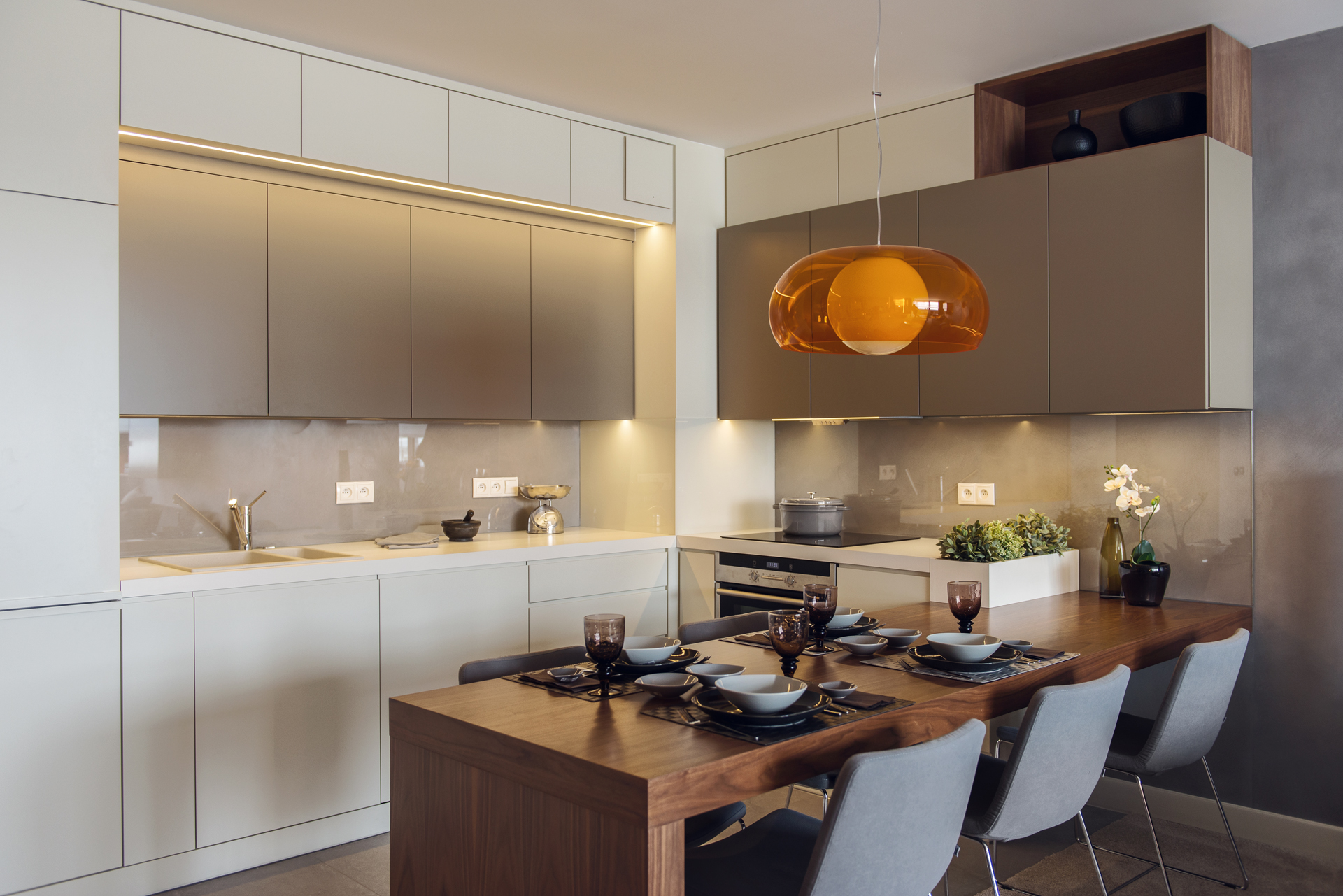 04 stół krzesła szafki lampa pomarańczowa
