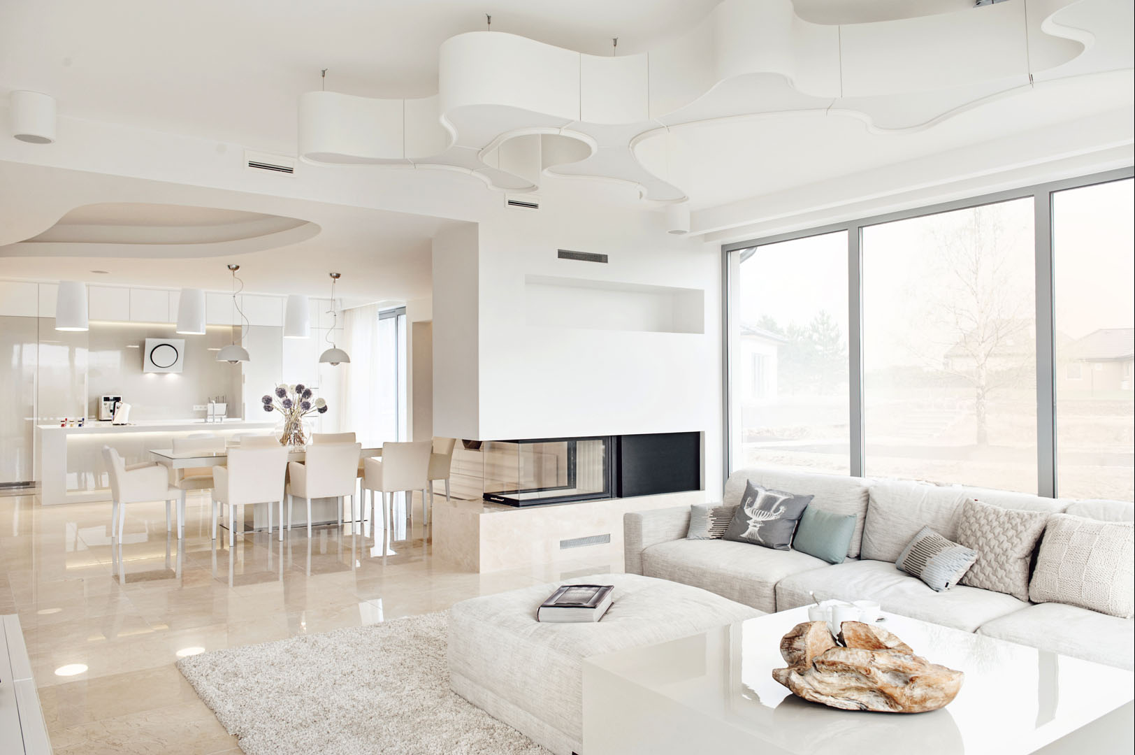 03 sofa lampa kominek jadalnia kuchnia marmur