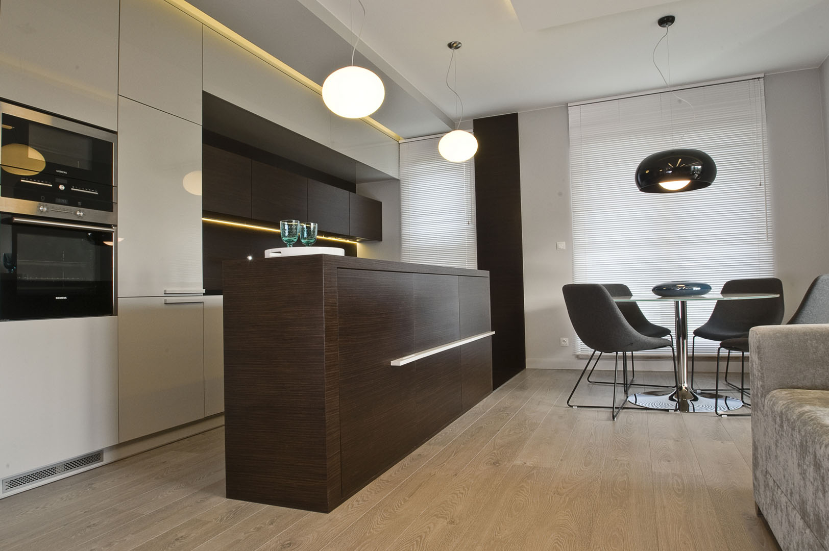 03 wyspa kuchenna kuchnia stół z krzesłami lampy