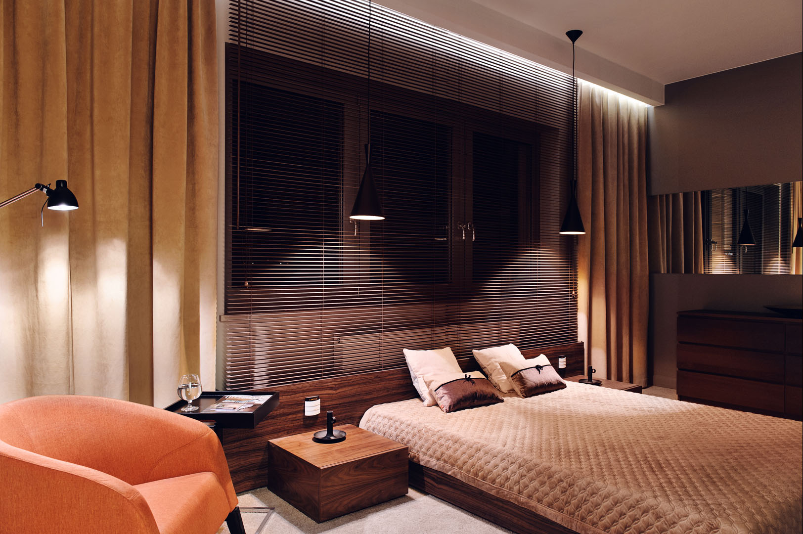 09 fotel łóżko żaluzje lampki zasłony wykładzina