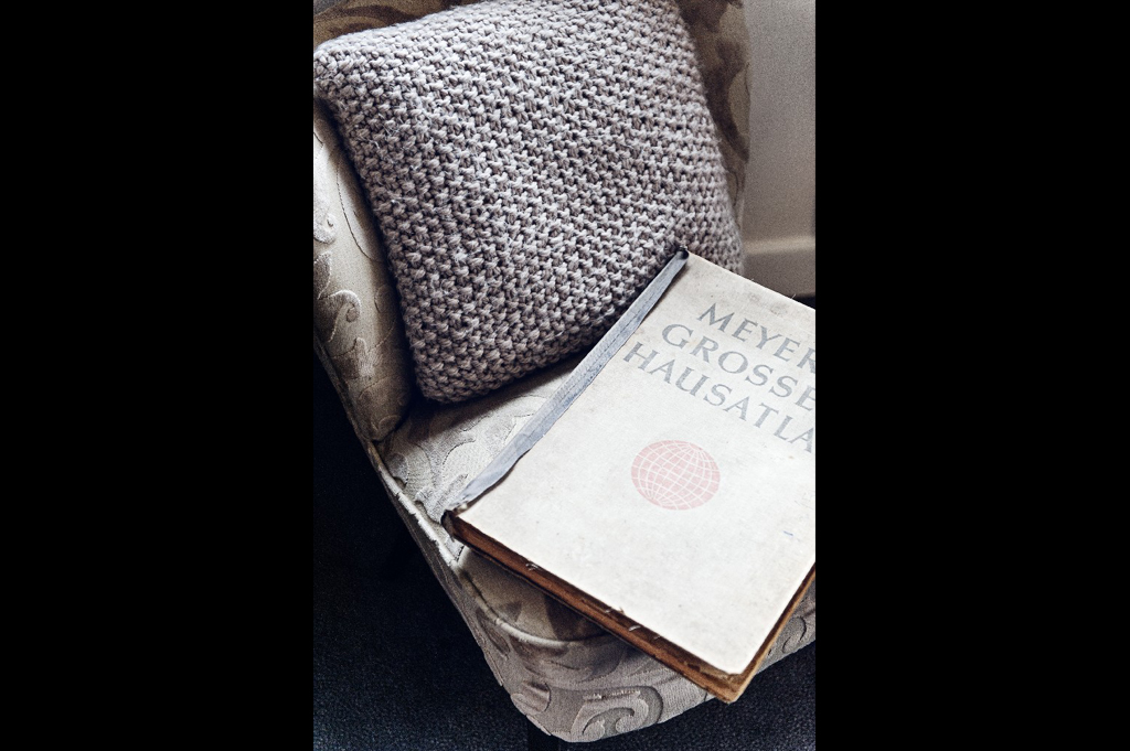 07 fotel vintage dziergana poduszka