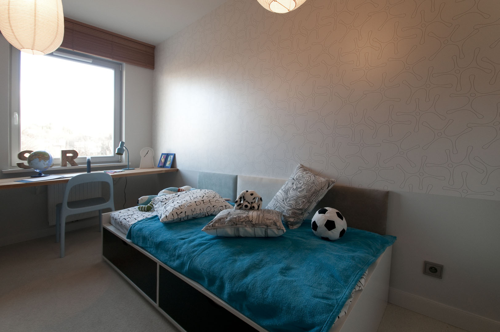 08 łóżo maskotki tapicerowane oparcie biurko krzesło lampa